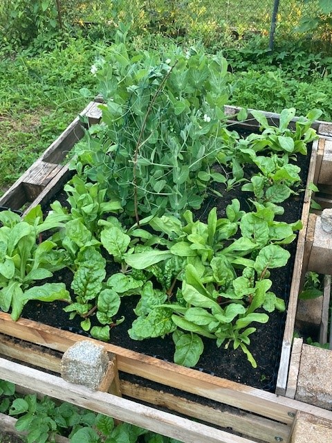 In der Gartenanlage „Bachgarten“ wird in Hochbeeten angebaut und geerntet.